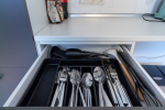 Die voll ausgestattete Küche ermöglicht es, sich selbst zu verpflegen. Des Weiteren gibt es ein modernes Badezimmer und die Schlafzimmer sind mit bequemen und hochwertigen Boxspringbetten ausgestattet.